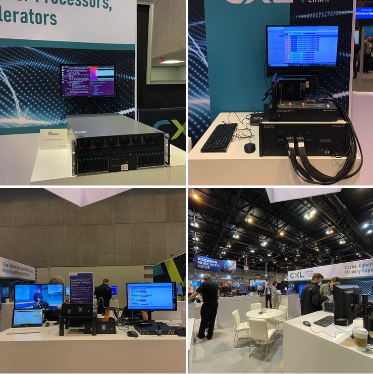 The CXL Consortium booth received great traction from attendees and interested industry experts were impressed by the CXL technology demos, both in-person and virtual, from member companies including Astera Labs, Cadence, Elastics.Cloud, GigaIO, IntelliProp, Meta, Mobiveil, Montage Technology, Rambus, Synopsys, Samsung and Teledyne LeCroy. We are excited to have support from our member companies this year and would like to extend a special thanks to all our members for their efforts to showcase CXL technology demos at SC21.