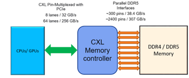 The use of a CXL-based memory controller – where the CPU would connect with the controller through the CXL interface and with DRAM memory through the DDR interface – meets bandwidth requirements by achieving up to 4 GB/s through a 16 lane CXL interface.