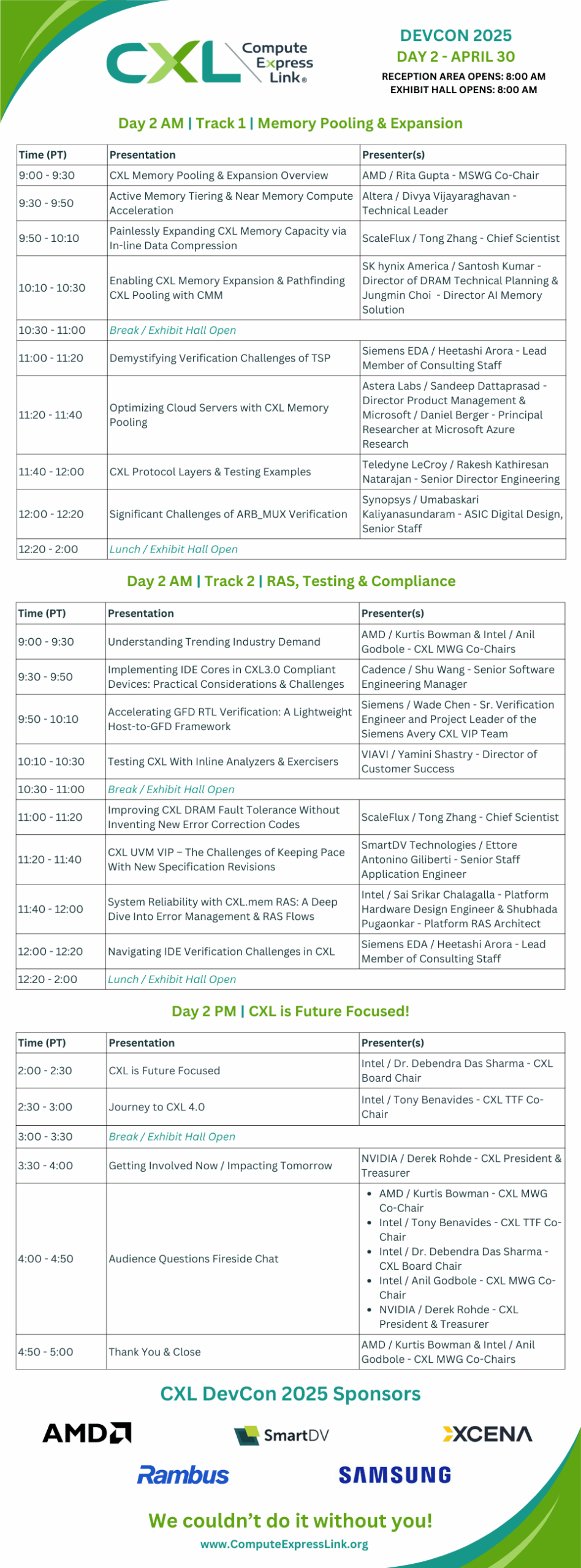 CXL DevCon 2025 will be held at the Santa Clara Marriott located at 2700 Mission College Blvd, Santa Clara, CA 95054.